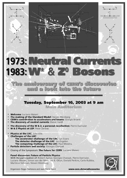 Le CERN organise un symposium le 16 septembre prochain pour célébrer l'anniversaire de l'observation des courants neutres en 1973 et de la découverte des bosons Z et W en 1983. Ce symposium sera également l'occasion d'évoquer le futur des découvertes au CERN.