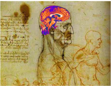 Superposée sur un dessin de Leonard de Vinci, cette image du cerveau a été obtenue par PET-scan après injection d’une molécule incorporant un émetteur de positron. CERN-MEDICIS produira de nouveaux isotopes pour l’imagerie, qui permettront notamment des tissus cancéreux et de les détruire en émettant une radiation localisée lors de leur décroissance radioactive.