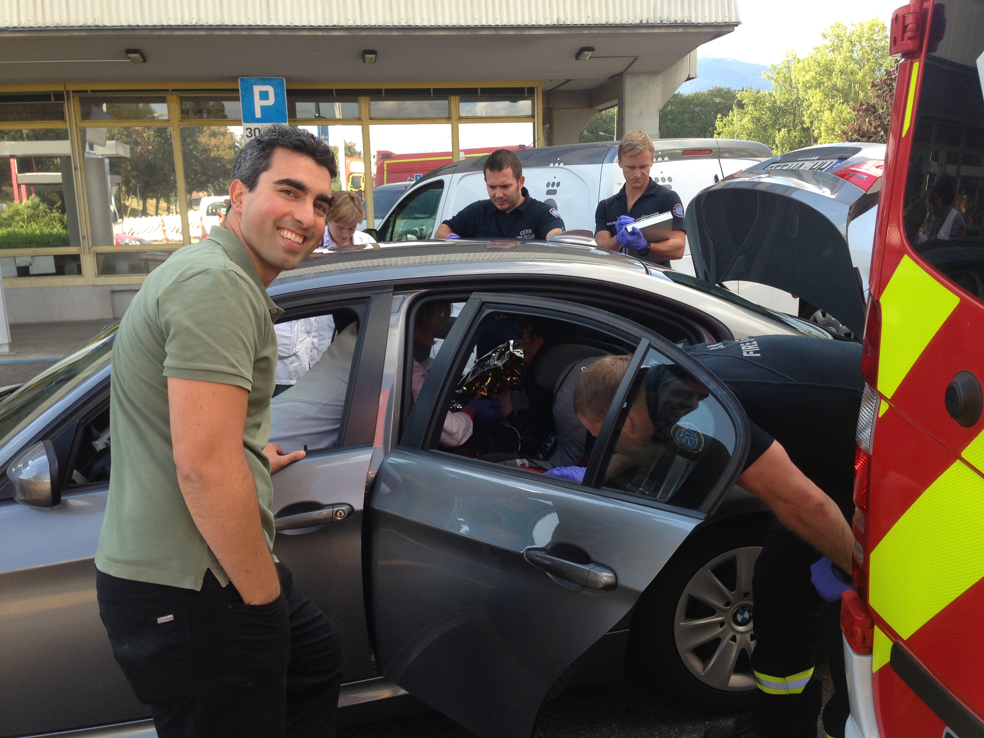 Le petit hadron en question a très clairement montré à quel point son désir d’interagir avec le monde était fort en arrivant un peu plus tôt que prévu, ce qui a obligé ses parents effrayés à arrêter leur voiture pour demander de l’aide. Heureusement pour eux, ils se trouvaient non loin du CERN. Notre Service médical et le personnel d’ambulance se sont montrés tout à fait à la hauteur de la tâche : les pompiers du CERN ont prodigué les premiers soins et des membres du Services médical les ont rapidement rejoints, ce qui a permis à la famille agrandie d’arriver en pleine forme à l’hôpital à bord du cardiomobile du CERN.