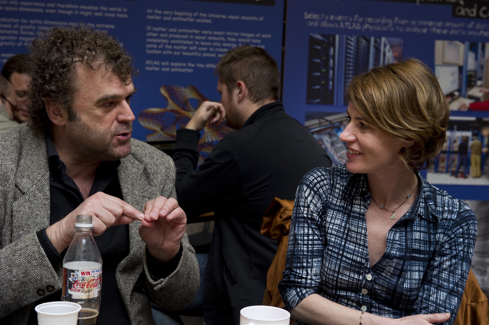 À la recherche d’inspiration en vue d’un court métrage, Irène Jacob, comédienne française et fille du physicien Maurice Jacob, et Pippo Delbono, metteur en scène et acteur de théâtre italien, ont visité les salles de contrôle d’ATLAS et de CMS lundi 17 mai. Le film sera projeté lors de la nuit des particules, manifestation organisée à l’occasion de la conférence ICHEP 2010.