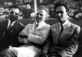 Werner Heisenberg (centre) with Wolfgang Pauli (left) and Enrico Fermi on Lake Como, September 1927.