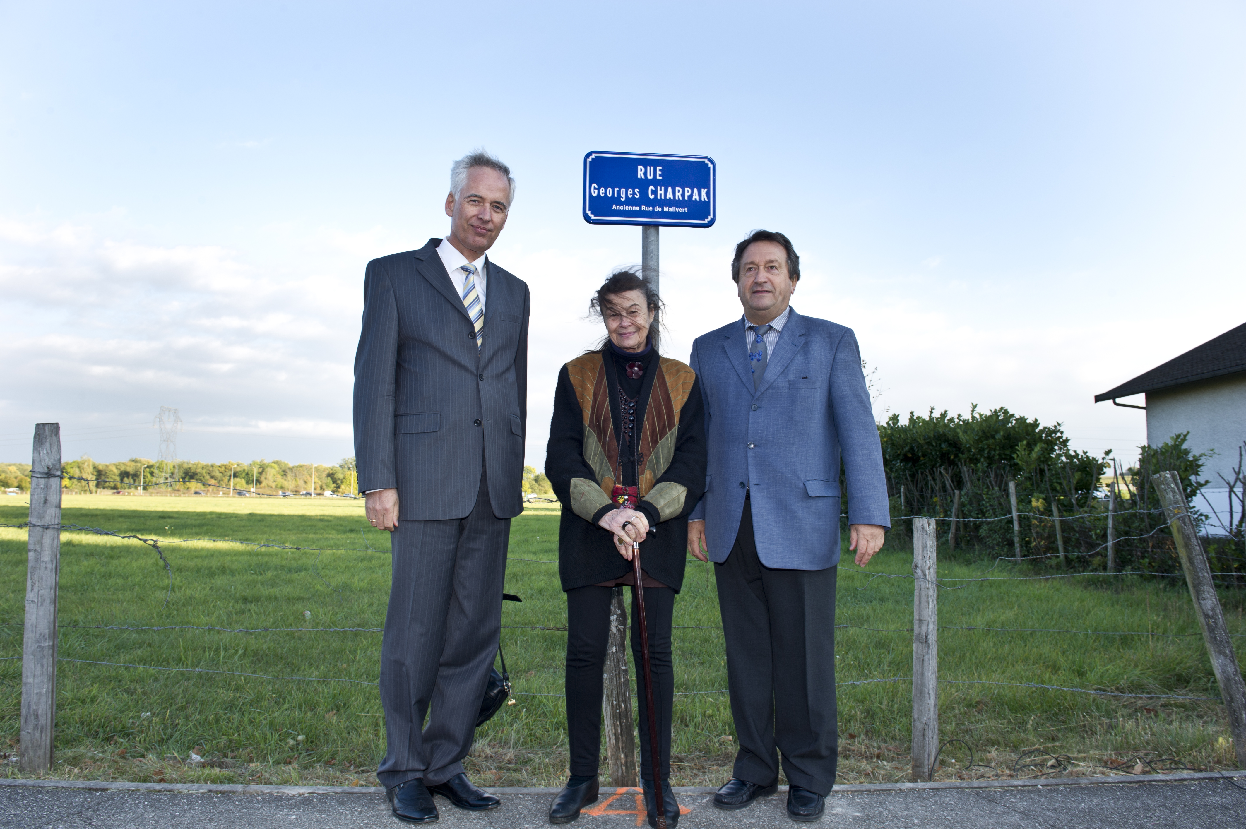 Organisée le vendredi 17 octobre par la mairie de Saint-Genis-Pouilly en présence de Dominique Charpak, l’épouse du physicien, et de Sigurd Lettow, directeur de l'administration et de l'infrastructure générale du CERN, la cérémonie de dévoilement de la plaque de rue fut émouvante et intime. Lors de son discours, c’est surtout l’engagement de Georges Charpak dans l’éducation scientifique des enfants que le maire de Saint-Genis-Pouilly a voulu saluer.