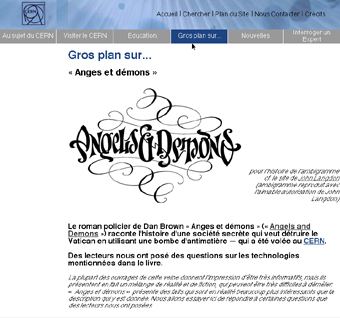 Dan Brown's best-selling novel "Angels & Demons" was published in French on 2 March. A web page on CERN's public site is dedicated to separating truth from fiction in this novel.