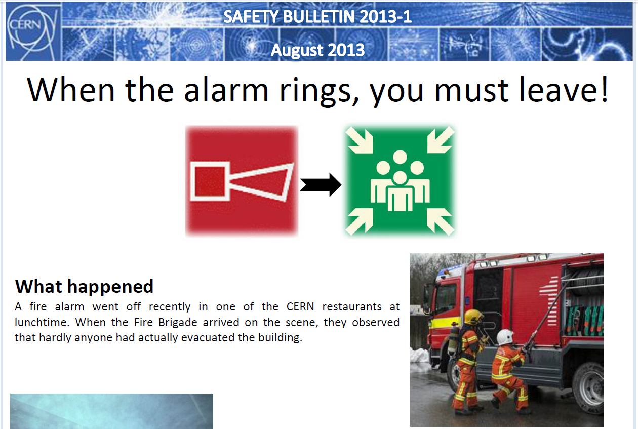 - Safety bulletins, notably outlining lessons to be learned in the wake of accidents/incidents occuring at CERN,