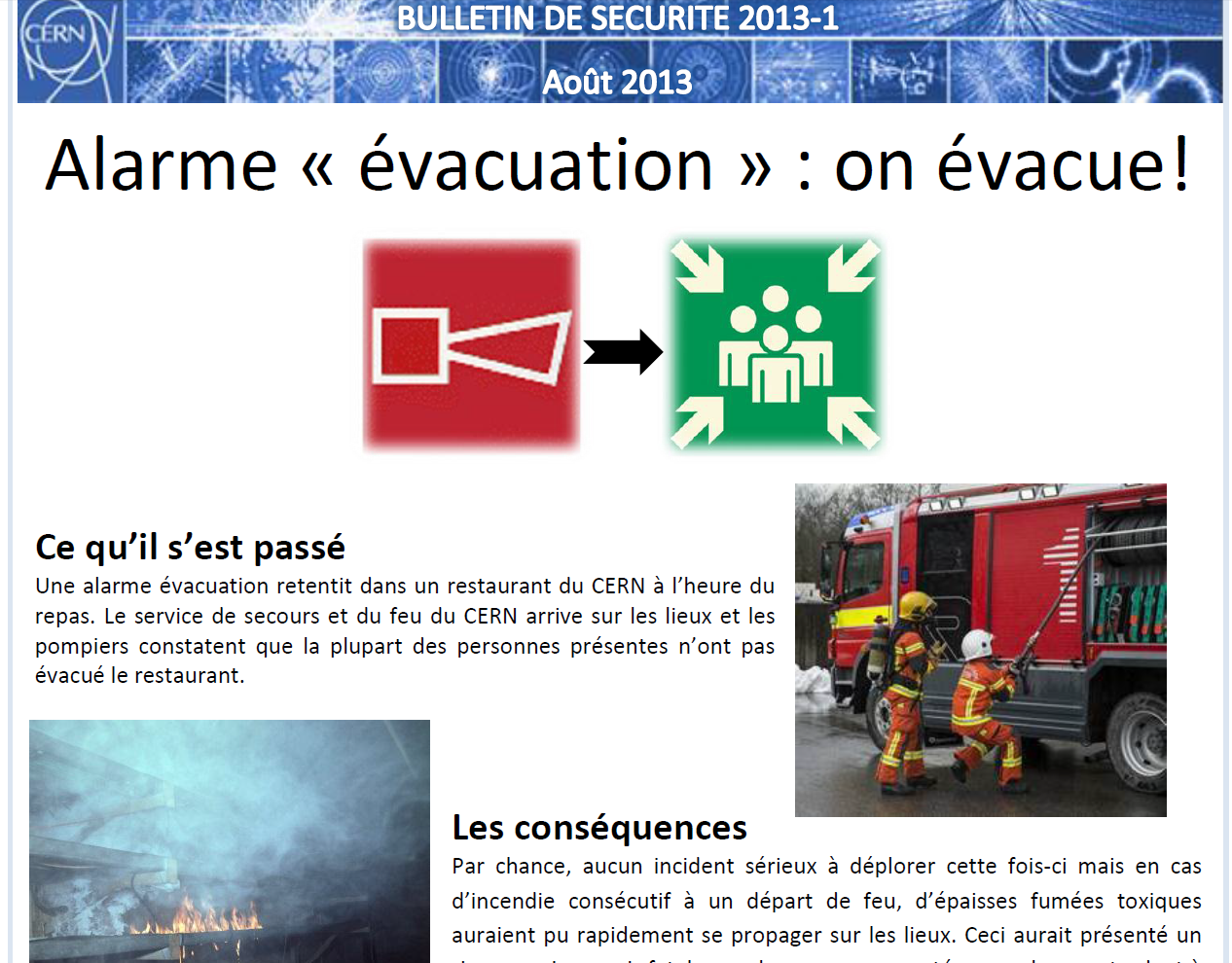 - bulletins de sécurité découlant notamment des leçons à tirer d’accidents/incidents survenus au CERN,