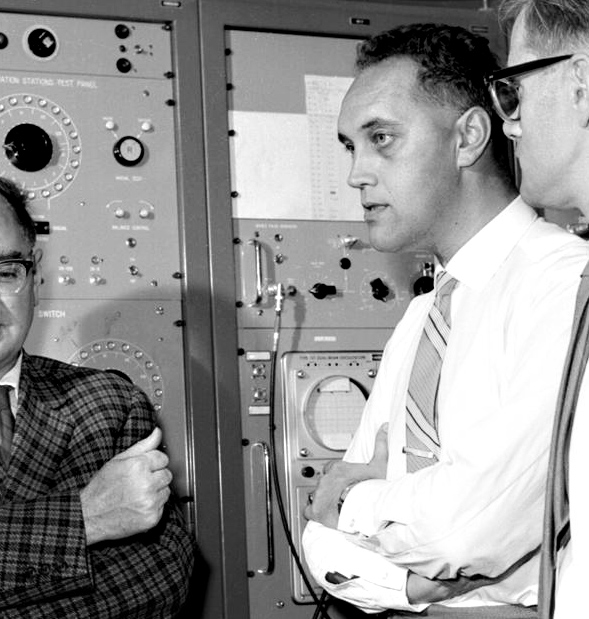 C.J. Zilverschoon in the PS Control Room, 1960. See the full version of the image (with A. Schoch and K. Johnsen) here.