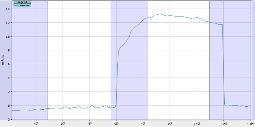 A view of the Linac4 taken during the recent tests (top image) and the current measured by the instruments at the end of the acceleration line on 14 November (bottom image). Images: Linac4 collaboration.
